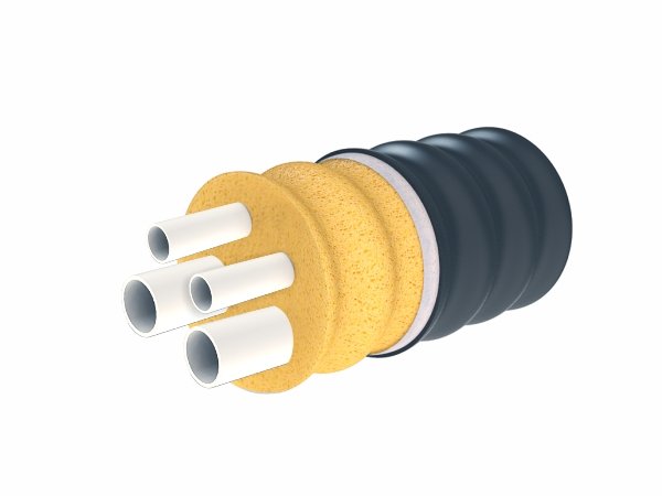 ТВЭЛ-ПЭКС-4 2x40x3,7+40x5,5+32x4,4/160 — четырехтрубная гибкая теплоизолированная труба из PEX-a. Первая пара — подача и обратка отопления, вторая — ГВС и рециркуляция. Аналог Изопрофлекс Квадрига.